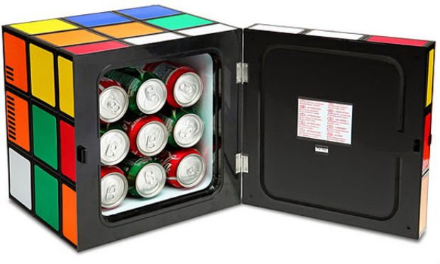 Se você gosta do cubo mágico de Rubik, vai adorar esse mini frigobar no mesmo formato! Ele tem capacidade para 9 latas, pode ser ligado na tomada ou no adaptador de carro e é super leve. Vimos aqui.